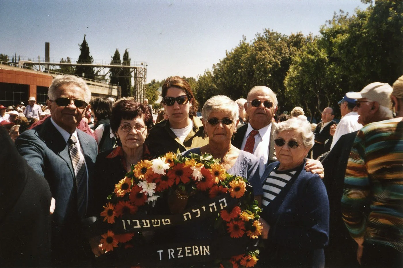 Laying of the Trzebinia wreath at Yad Vashem on Holocaust Martyrs’ and Heroes’ Remembrance Day, 2005. (Credit: Yad Vashem)